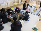 小学1年生が6名、小学2年生が4名、それぞれ1時間、3名の南中生から冬休みの宿題のわからないところを教えてもらいました。タブレットを通したデジタルドリル問題については、中学生はミニボードに解説を書きながら、小学生に説明していました。小学生からは「今度、このようなことをするときは、勉強の後に鬼ごっこをやりたい」との声があがっていました。