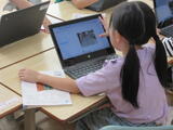写真は1年算数科の授業の様子です。1年生は入学して8か月が経過しましたが、タブレット端末を授業や諸活動の中で日頃から使用しています。この授業ではグーグルクラスルームを通して、情報を共有していました。稚内市では年度末までに児童生徒用タブレット端末が更新され、次年度からは新しいものが使える予定です。