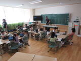 9月19日に5年生が総合的な学習の時間における稚内市の産業について学ぶ学習の一環として、宗谷総合振興局産業振興部林務課職員の皆様を講師に木育の授業を受けました。写真のとおり、座学のみではなく作業を伴った学習を通して、児童は木や林業について学んでいました。