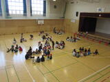 この日の中休みは体育館で1年生と5年生の合同あそびが行われました。「お互いの顔と名前を知る」ことを目的に誕生日ごとにグループに分かれ、自己紹介から行っていました。