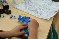 車を組み立てて競争したり、風車を回したりしています。