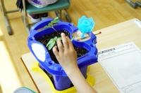1年生が育てているアサガオが少し大きくなりました。