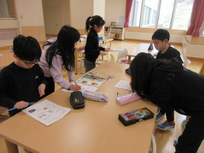 きらり学級では、1年生を迎える会を行いました。上級生達がこれまで準備してきて、今日はしっかりと進行を務めました。楽しいゲームで触れ合いながら親交を深めていました。