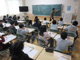 学芸会の練習・準備期間中ですが、通常の学習は進んでいます。4年算数科では分配法則について学んでいます。4年生は周りと相談し合いながら工夫して計算を行っていました。今後も使い続ける法則ということもあり、授業者はかなりの熱量で授業を進めていました。