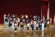 昨日と本日、体育館での通し練習を学年ごとに行っています。立ち位置やマイクの位置を含め、細かいところまで調整を行っていました。(写真は2・4・6年生の様子)